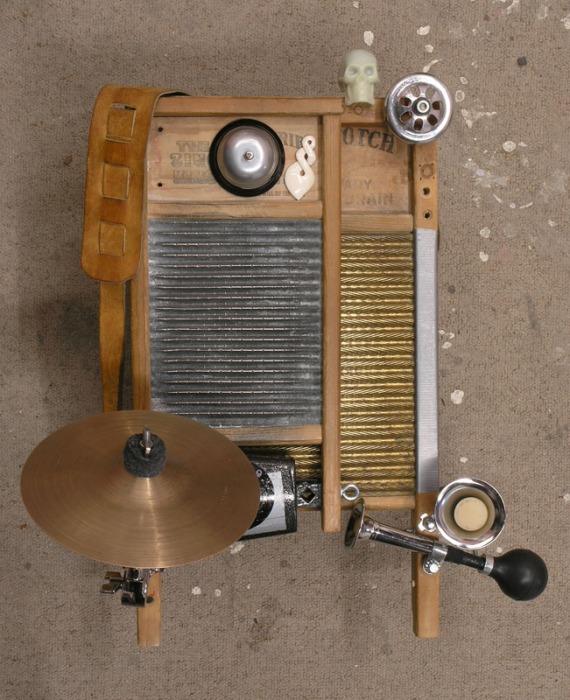 Instrumento primitivo de inspiración africana hecho a mano por el bluesman Leo Cayuela. El instrumento incluye un auténtico bottle neck slide. Los dos instrumentos están hechos con material de reciclaje. Los dos instrumentos están electrificados lo que permite conectarlos a un amplificador de guitarra. Envíos solo territorio nacional.