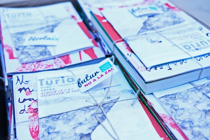 Appreciation (online and in calendar) + digital copy of Extra TURIA billboard Aturem la ZAL, recuperem la Punta + Mala punta nunca muere poster by Anaïs Florin + pack of four fanzines designed by Anna Penyas, Elias Taño and Les Bovaes exclusively for the Aturem la ZAL, recuperem la Punta campaign (shiping cost included -peninsula- if you cannot pick it up personally).