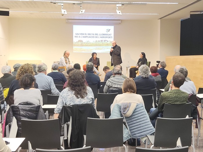 Per la seva banda, Lluís Toldrà, va lamentar les poques veus contràries que se senten en general quan es plantegen grans projectes d'infraestructures com l'ampliació de l'aeroport del Prat, ja que la maquinària política i mediàtica genera un discurs hegemònic i favorable a aquests projectes ecocides. Així, va dir que, amb els pocs mitjans de què disposen en general les entitats ecologistes i només amb el poder de la paraula, resulta molt difícil defensar el bé comú. Per això va destacar, novament, la importància de la campanya de micromecenatge, que ha de permetre potenciar les eines de contenció contra les noves agressions cap al Delta. Més enllà d'això, es va preguntar com és possible que l'Administració i AENA, davant d'un procés d'infracció europeu, no assumeixin les seves responsabilitats i optin per continuar destruint el delta del Llobregat amb una nova ampliació aeroportuària.